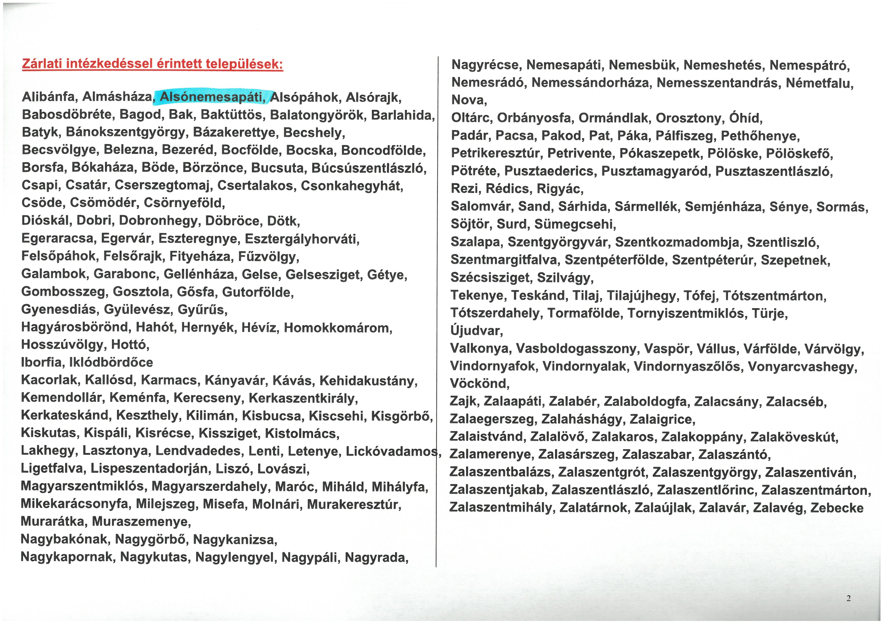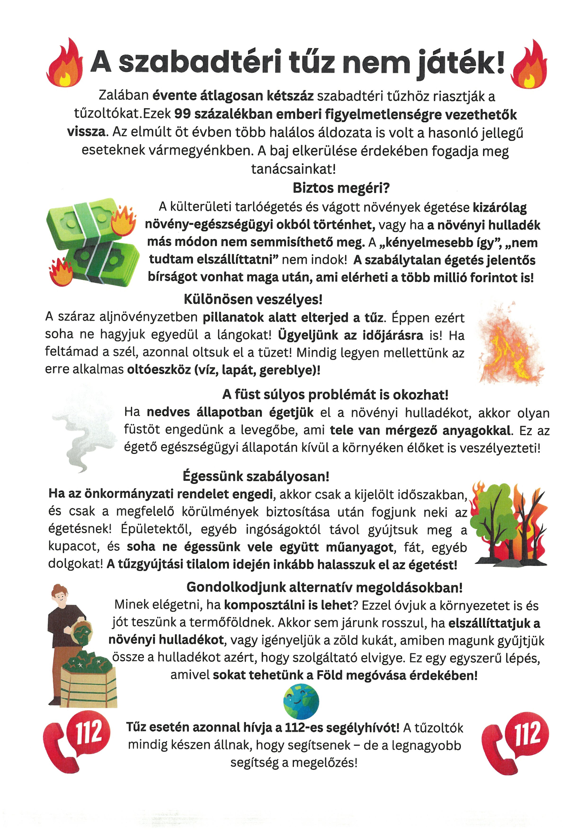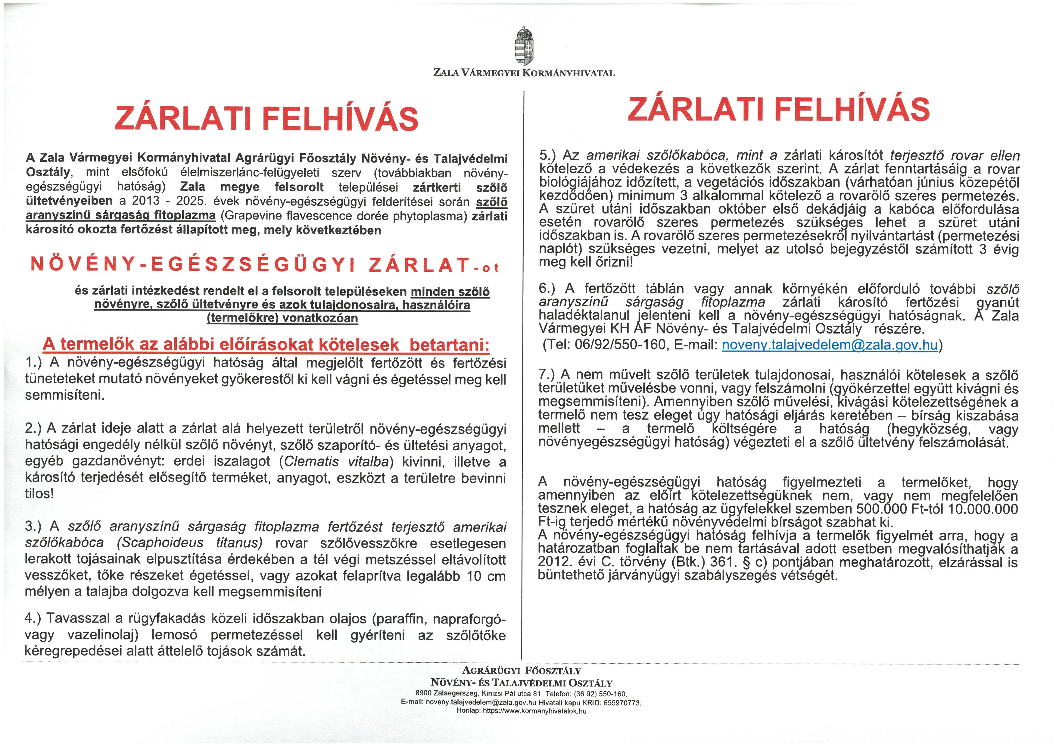 Zala Vármegyei Katasztrófavédelmi Igazgatóság hirdetménye