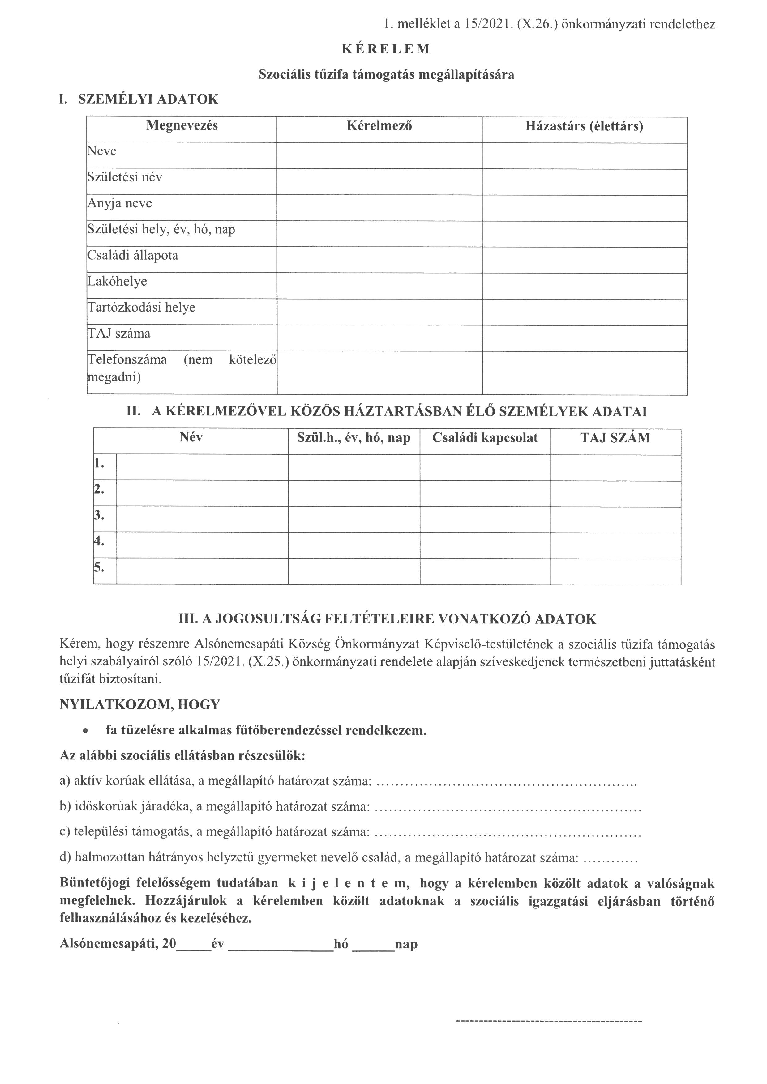 Az önkormányzat jelzi az igényeket a Közigazgatási és Területfejlesztési Minisztérium felé az ismert informatikai rendszeren keresztül, ami után az önkormányzat a kapott mennyiségű tűzifa terhére tudja azt kiosztani.